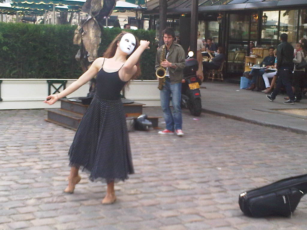 He looked out at the plaza and ordered another glass of wine, a surprisingly good Sancerre Blanc. The Islamic girls had departed; the rain was letting up. The overflow crowd was resuming their activities, in a few minutes he was alone physically as well as spiritually. The sun broke through the clouds, a surprise. A saxophone player arrived, accompanied by a masked dancer. The music was ethereal, the dancing surreal. He was captivated, enchanted. He dropped twenty Euros into the hat, an absurdly high amount.