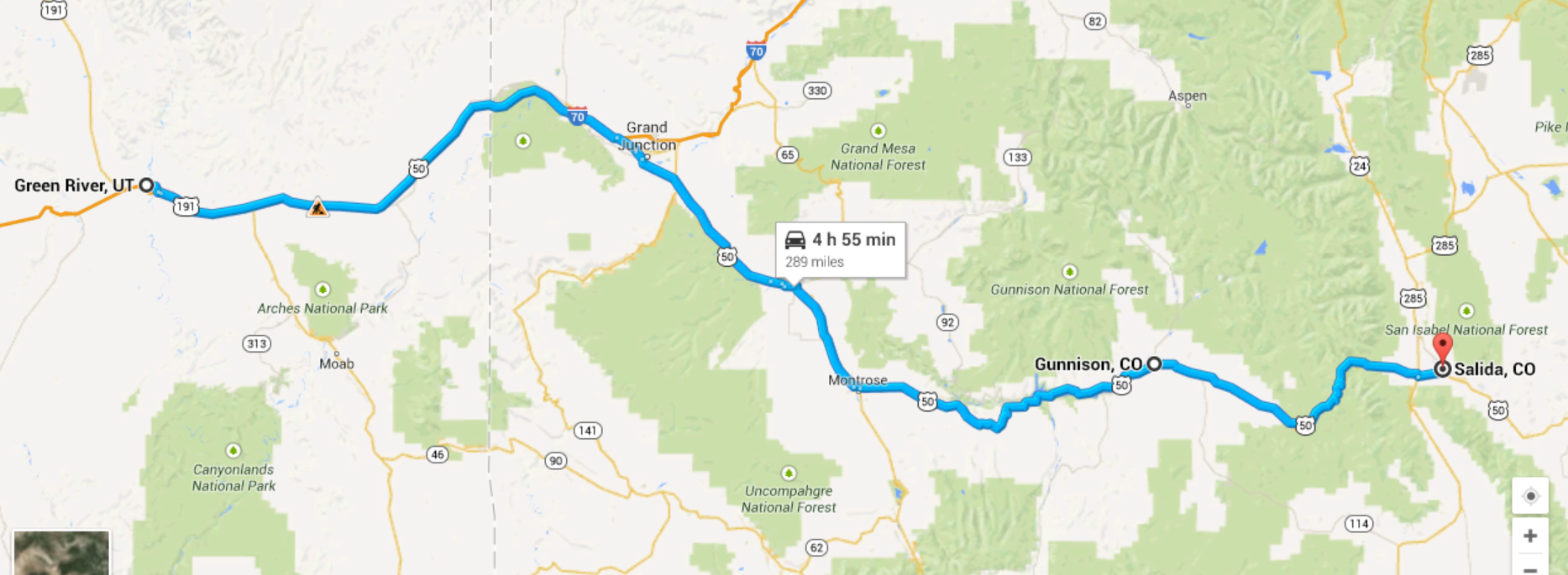 Stops: 3 (Pueblo CO (breakfast), Lamar CO (cold drinks), Garden City KS (gas))